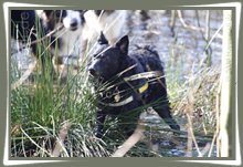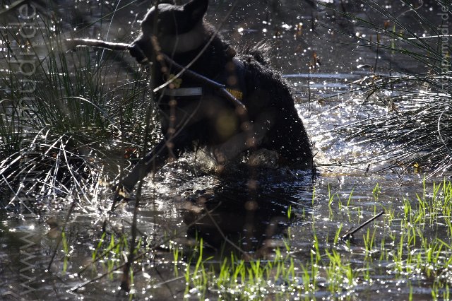 Murphy und Leo retten alles, auch ein Stöckchen.