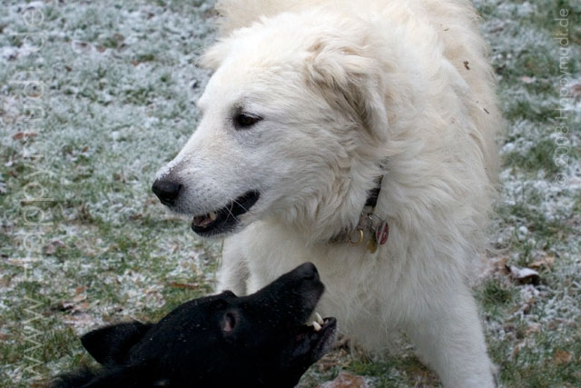 Moppel und Kuvasz Sarah konnten sich zwar nicht im Tiefschnee tummeln,