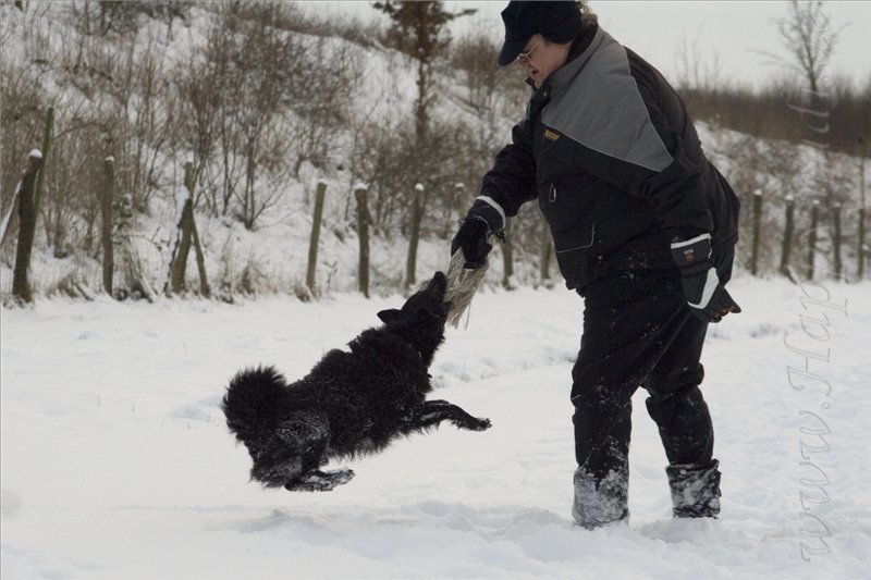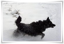 Ab und zu will sich ein Mudi auch mal als Flugmudi betätigen. Es macht soooo viel Spaß, im tiefen, weichen Schnee zu landen und mit Herrchen zu toben.