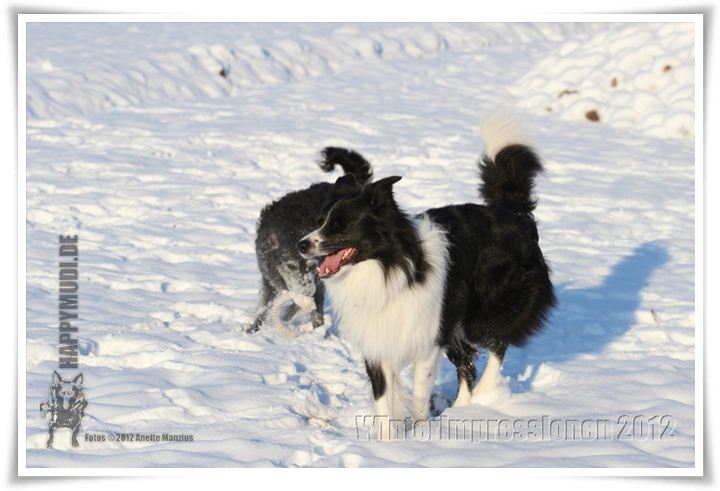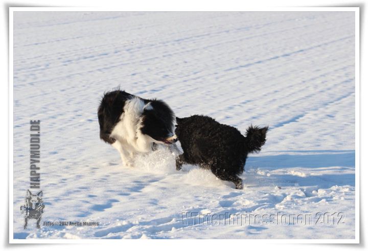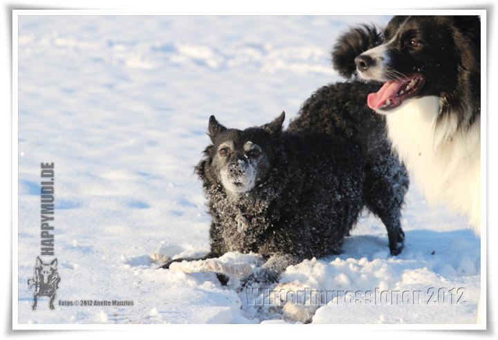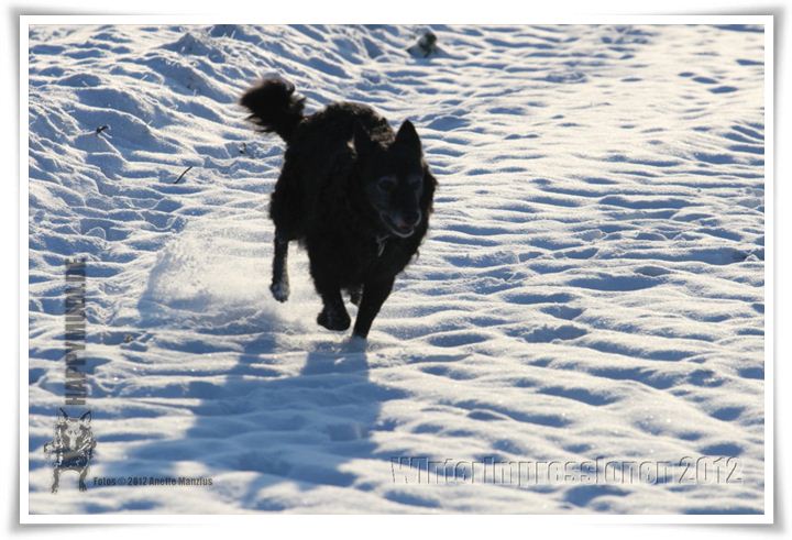08. Dezember 2012 | Dicker Schneefall. 10 Zentimeter. In unseren Breitengraden in der Nähe von Düsseldorf ist das schon viel. Und nach dem Schnee kommt die Kälte und die Sonne. Und natürlich zieht man mit Hund und Fotoknips in die glitzernde Pracht hinaus. Die Hunde haben Spaß. Wir auch. Und dazu noch ein paar herrliche Hundefotos. Winterimpressionen eben.