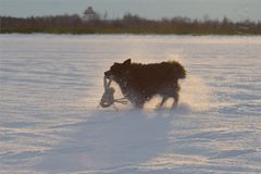 Endspurt durch den Schnee bevor die Sonne untergeht.