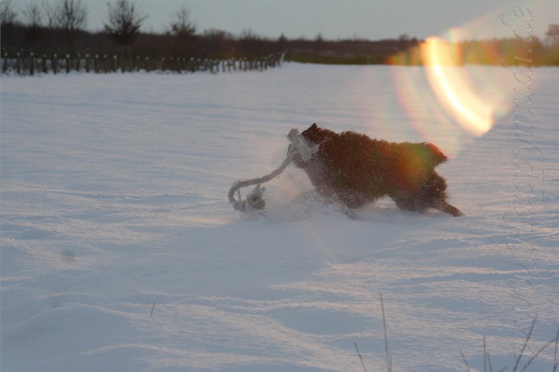 mit seinem liebsten Spielzeug, seinem Rangelseil, durch den tiefen